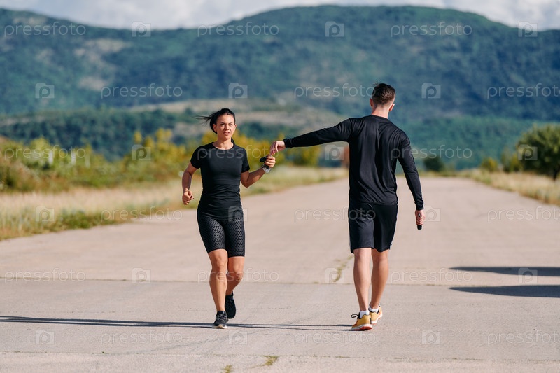 Пара поддерживает здоровый образ жизни, бегая в солнечный день