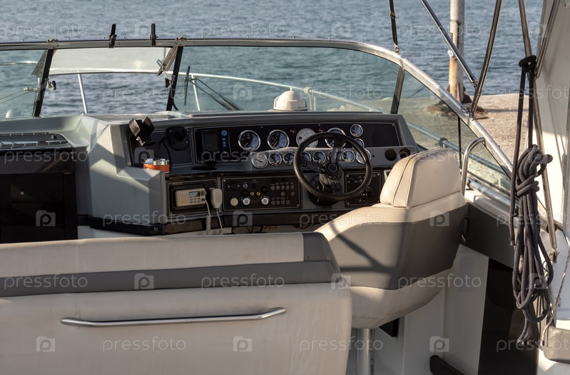 Фрагмент яхты и штурвал на судне