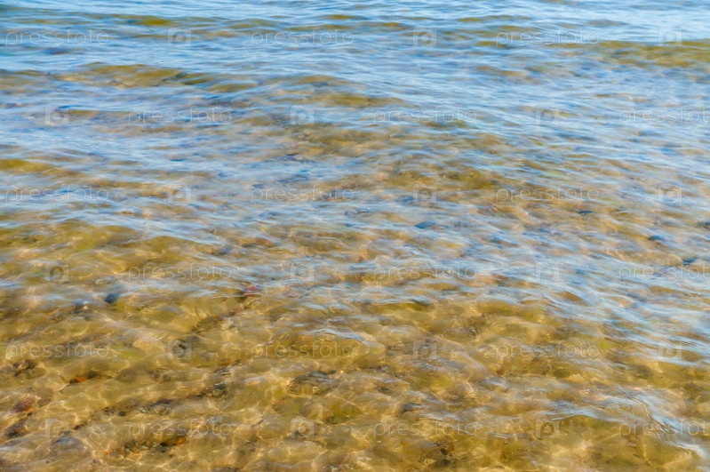 Фон — чистая вода. Вода с желтым оттенком. Дно водоема сквозь воду