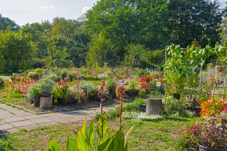 Сад однолетних культур в ботаническом саду Московского Государственного Университета. Солнечный день в середине сентября