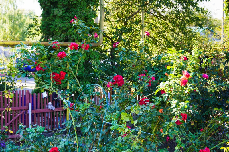 Сельский пейзаж. Розы в палисаднике. Поселок Красная Заря. Орловская область