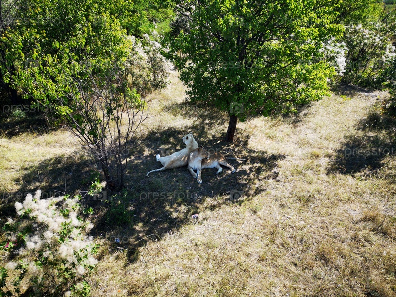 Львы отдыхают в тени дерева