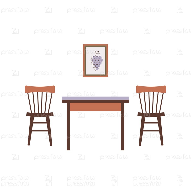 Интерьерная плоская цветная иконка с двумя стульями, столом и постером с виноградом