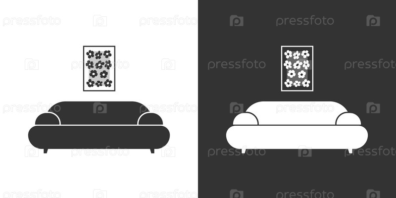 Мебельная интерьерная черная и белая иконка с диваном и постером