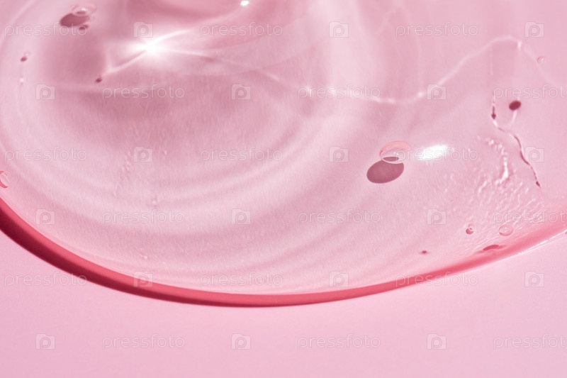Жидкий гель абстрактный косметический на розовом фоне. Мазок прозрачного увлажняющего продукта