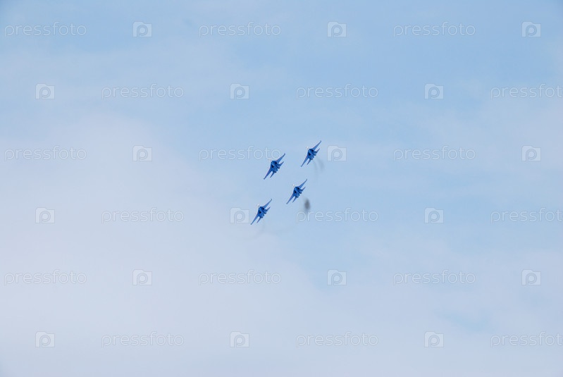 Выступление пилотажной группы «Русские Витязи» на авиашоуОмск, Россия - 19 марта 2016 г.: Выступление пилотажной группы «Русские Витязи» на авиашоу
