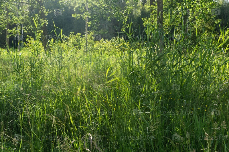 Луговая трава на опушке леса крупным планом