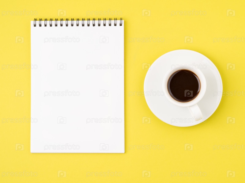 Блокнот открыт с белой пустой страницей для записи идеи или списка дел,