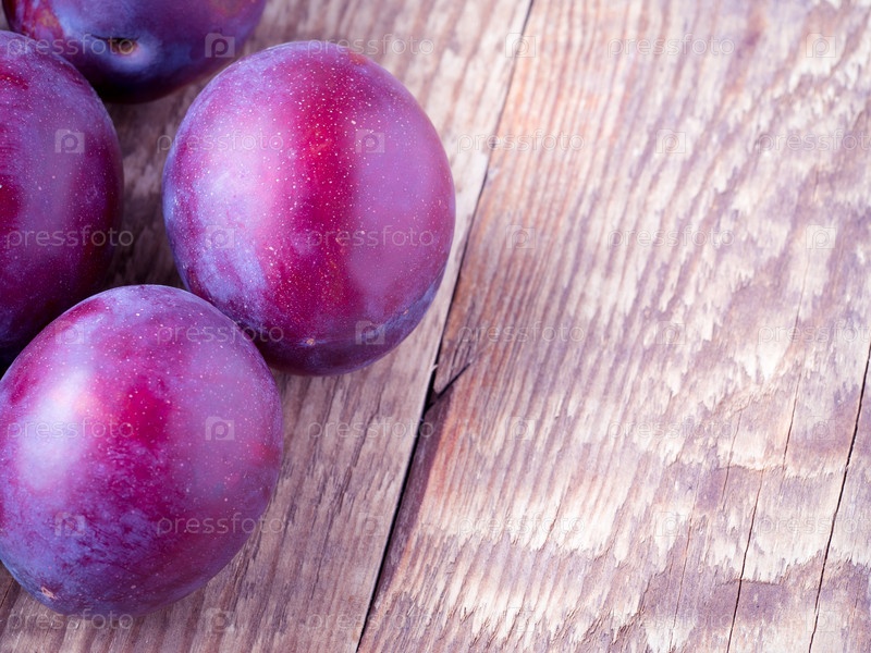 Крупная красная сладкая слива на деревянном фоне