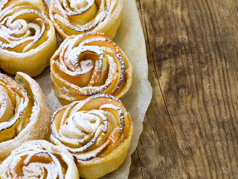 Домашняя выпечка из слоеного пресного теста с яблоками