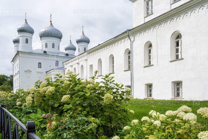 Новгород, Россия - 30 июля 2024 г. Здания ансамбля Свято-Георгиевского монастыря