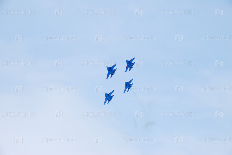 Выступление пилотажной группы «Русские Витязи» на авиашоуОмск, Россия - 19 марта 2016 г.: Выступление пилотажной группы «Русские Витязи» на авиашоу
