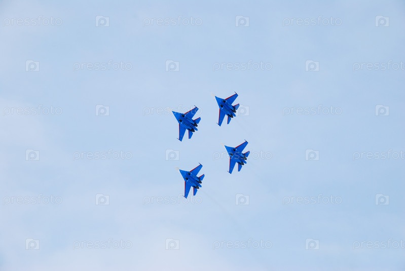 Выступление пилотажной группы «Русские Витязи» на авиашоуОмск, Россия - 19 марта 2016 г.: Выступление пилотажной группы «Русские Витязи» на авиашоу