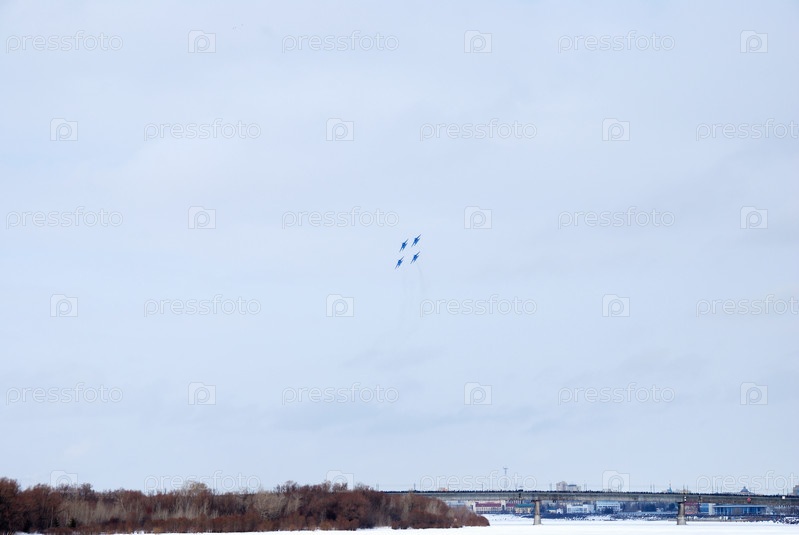 Выступление пилотажной группы «Русские Витязи» на авиашоуОмск, Россия - 19 марта 2016 г.: Выступление пилотажной группы «Русские Витязи» на авиашоу