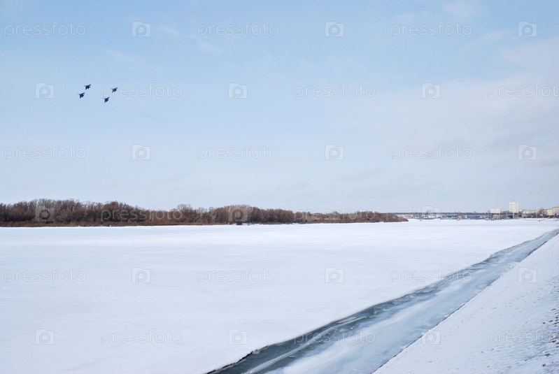 Выступление пилотажной группы «Русские Витязи» на авиашоуОмск, Россия - 19 марта 2016 г.: Выступление пилотажной группы «Русские Витязи» на авиашоу