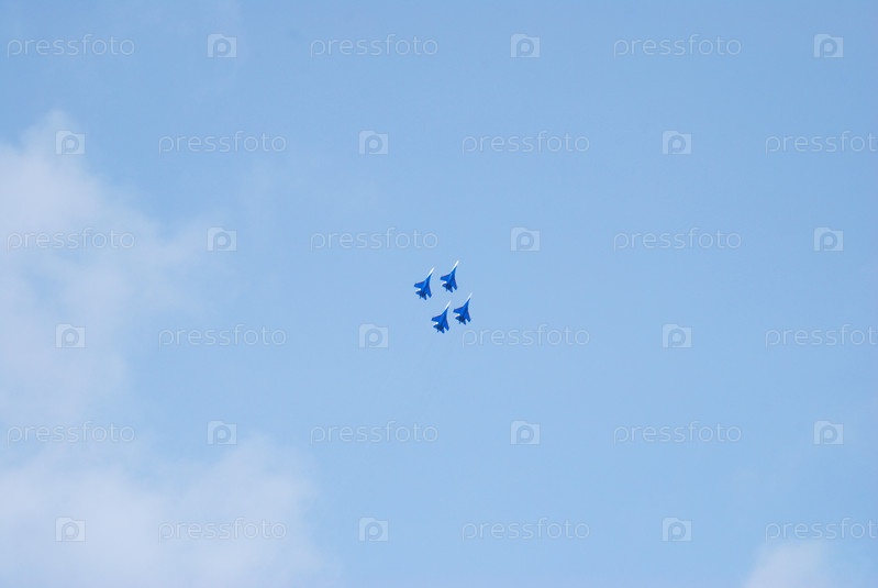 Выступление пилотажной группы «Русские Витязи» на авиашоуОмск, Россия - 19 марта 2016 г.: Выступление пилотажной группы «Русские Витязи» на авиашоу