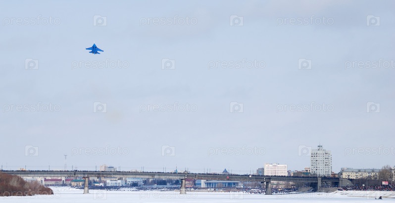 Выступление пилотажной группы «Русские Витязи» на авиашоуОмск, Россия - 19 марта 2016 г.: Выступление пилотажной группы «Русские Витязи» на авиашоу