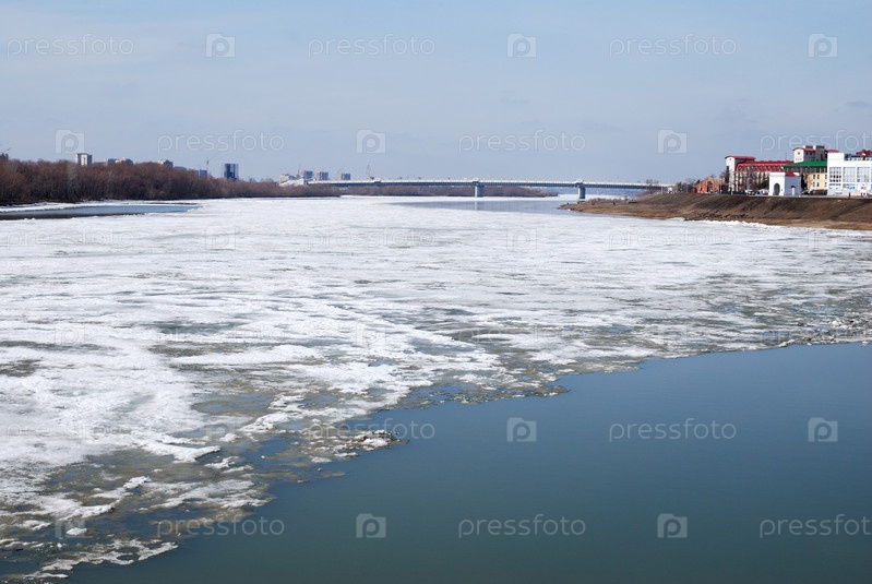 Река Иртыш ранней весной, город Омск, Сибирь, Россия