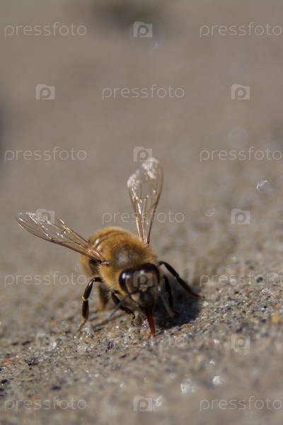 Пчела собирает воду среди песков