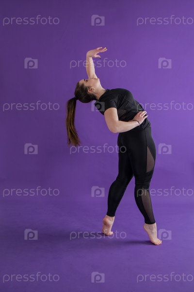 Девушка 25-30 лет со спортивной фигурой позирует в студии