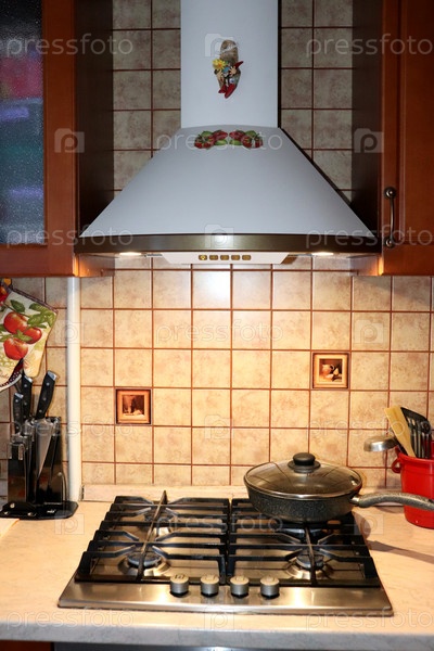 Кухонный уголок с газовой плитой и вытяжкой с подсветкой
