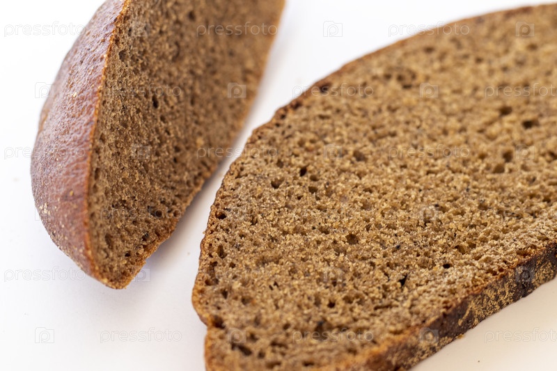 Крупный план кусочков черного хлеба на белом фоне. Еда