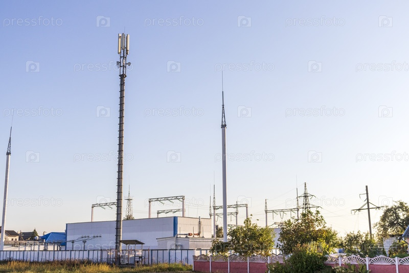 Изображение громоотводов на электроподстанции. Чистая энергия