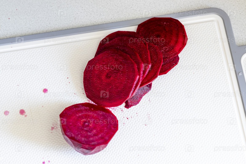 Снимок свежеочищенной и порезанной свеклы. Овощ