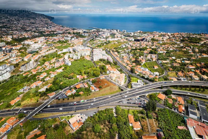 Вид с дрона на город Фуншал, Мадейра, Португалия