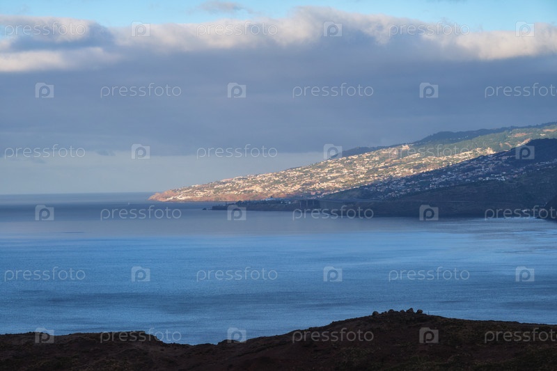 Вид на город Фуншал и аэропорт. Мадейра, Португалия