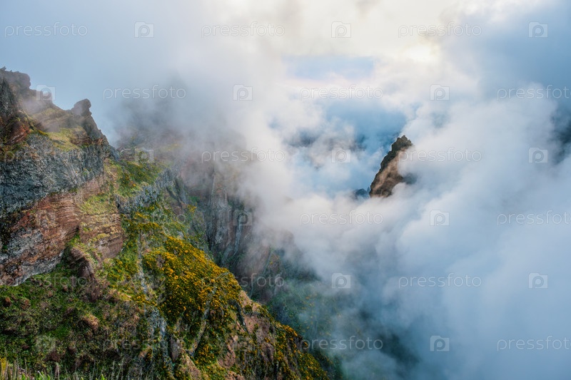 Гора, покрытая туманом и облаками. Остров Мадейра, Португалия