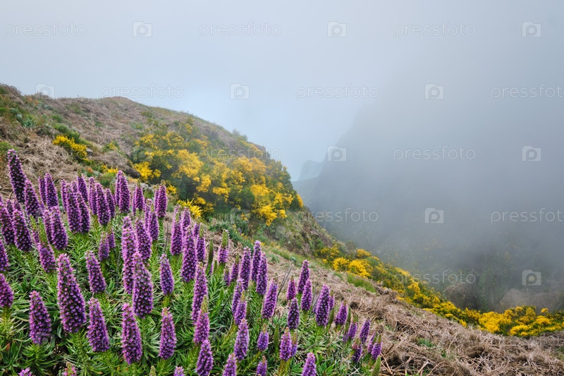 Вид вблизи Пику-ду-Ариейру, Португалия в облаках
