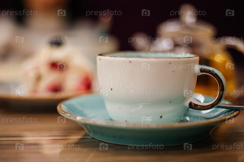 Красивая керамическая кружка в бело-зеленом цвете крупным планом