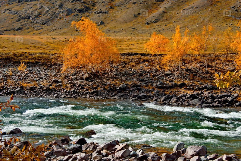 Россия. горный Алтай. Живописные осенние краски в горах долины реки Чулышман
