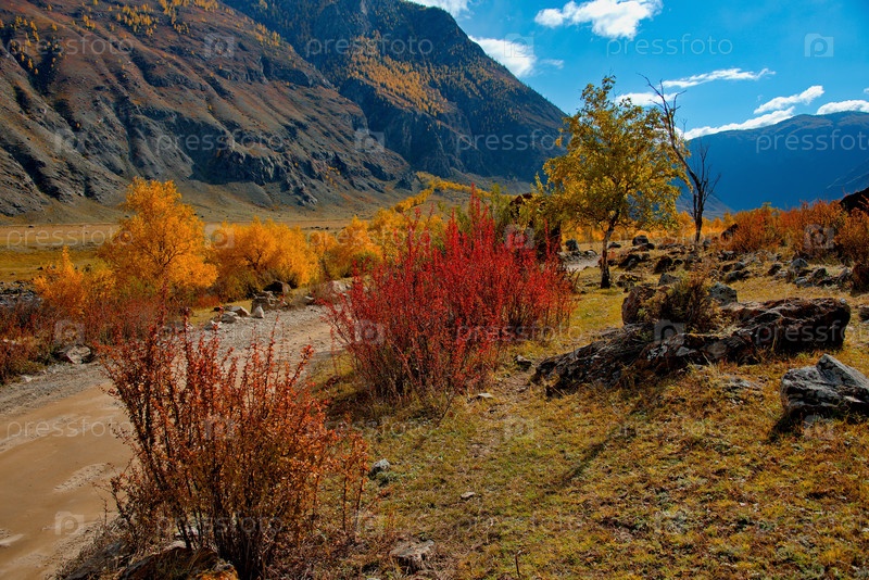 Россия. горный Алтай. Живописные осенние краски в горах долины реки Чулышман