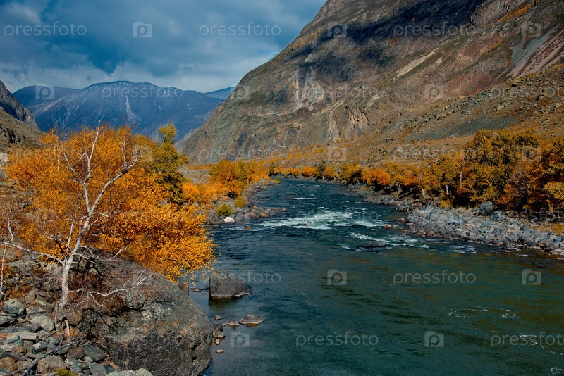 Россия. горный Алтай. Живописные осенние краски в горах долины реки Чулышман