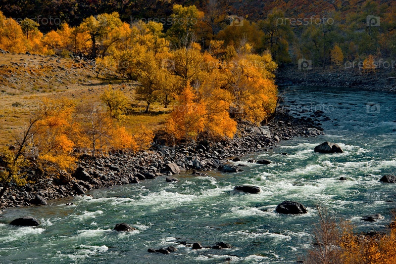 Россия. горный Алтай. Живописные осенние краски в горах долины реки Чулышман