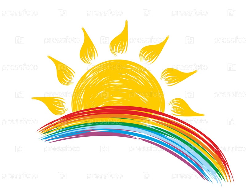 Логотип летнего солнца с радугой