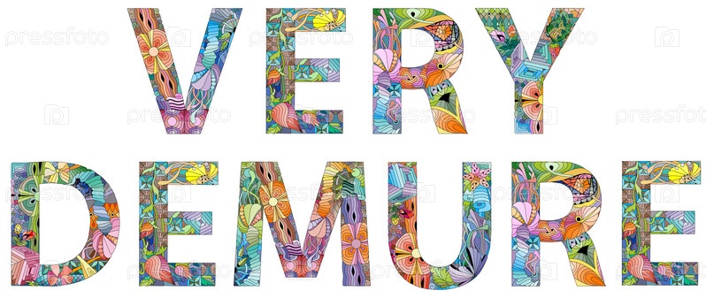 Ручная роспись художественного дизайна.Ручно нарисованные иллюстрации слов VERY DEMURE для футболок и других украшений