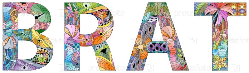 Слово BRAT с символом мира. векторный декоративный зэнтангл объект