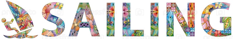 Ручная роспись художественного дизайна.Ручно нарисованная иллюстрация слов SAILING со спортивным значком для футболки и других украшений