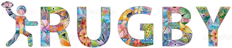 Ручная роспись художественного дизайна. Нарисованная вручную иллюстрация слова РЕГБИ со спортивным значком. для футболки и других украшений