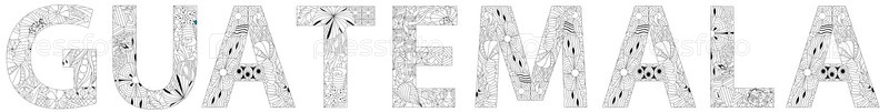 Вектор слово Гватемала. Ручная роспись арт-дизайна. Иллюстрация для дизайна футболки, для раскрашивания, татуировки и других украшений