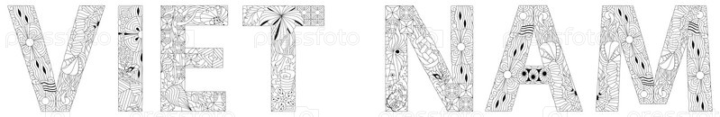 Слово Вьетнам. Ручная роспись. Иллюстрация для дизайна футболок, для раскрашивания, татуировок и других украшений