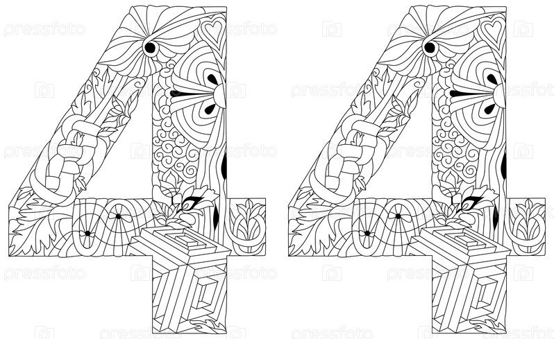 Сорок четыре цифры Изолированная зентангл-иллюстрация для украшения, для раскрашивания
