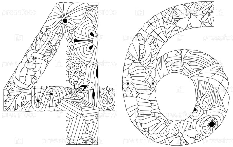 46-значный винтажный шрифт для раскрашивания. Дизайн гравировки. Векторная иллюстрация