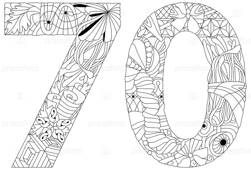 70-ти значный винтажный шрифт для раскрашивания. Дизайн гравировки. Векторная иллюстрация