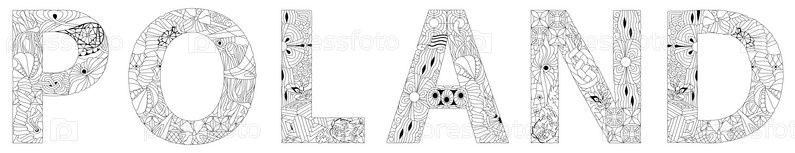 Польша — страна в Центральной Европе. Векторный декоративный зентангл-объект для раскрашивания