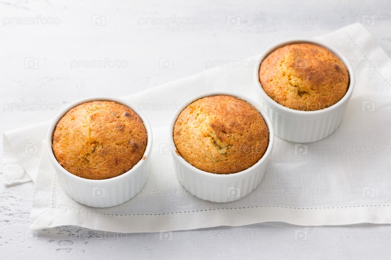 Свежеиспеченный вкусный морковный манник с орехами на светло-голубом фоне, вид сверху. Вкусная домашняя еда