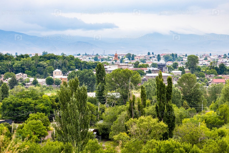Вид с воздуха на город Гюмри в пасмурный летний день